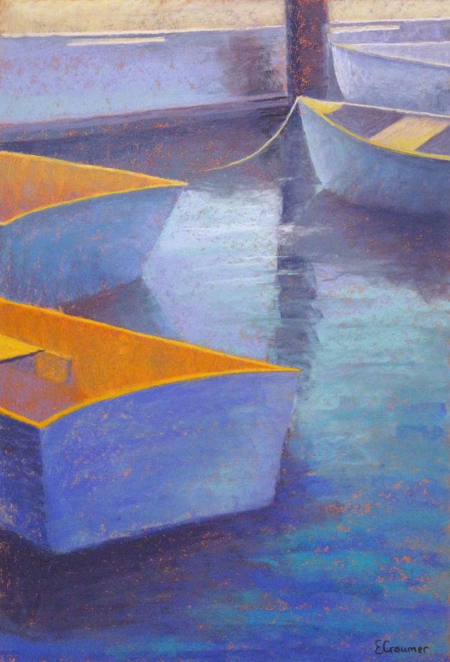 Since moving to New Hampshire a few years ago, I have been inspired by the uniquely beautiful landscapes around me to create colorful pastel pieces. I have learned a lot by painting outdoors on location with the NH Plein Air group and becoming totally immersed in the environment in which I am working. These experiences forced me to make quick, bold decisions because the light is always changing. Working from photographs provides me the artistic opportunity to select the lighting as well as the season. They give me a little more freedom to experiment with the color of the landscape. I have recently discovered that flowers catch incredible light.